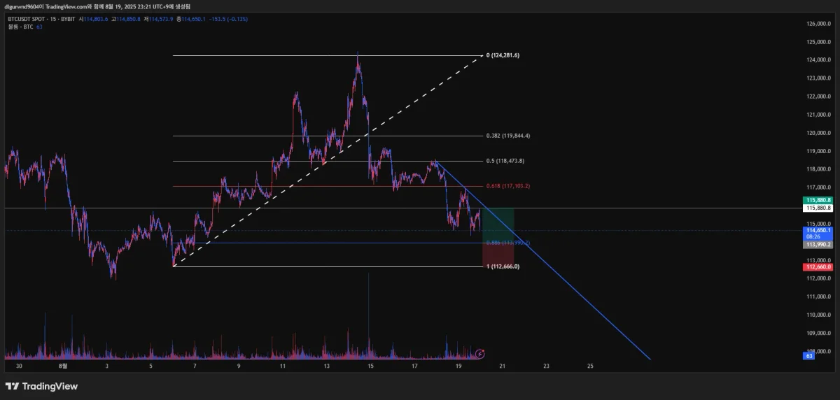 2) 115.88k에서 큰 거래량을 동반한 음봉이 나왔는데, 이는 해당 가격에 캔들이 도달하면 튕겨져 내려갈 가능성이 높다고 봤음.