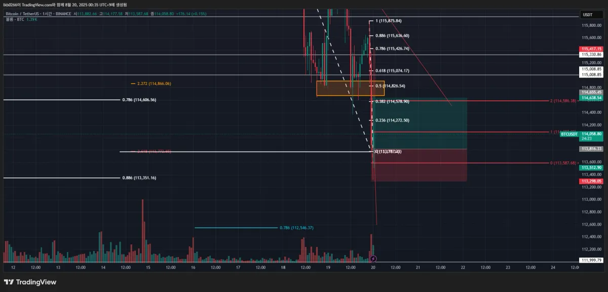 -0.786 자리와 0.886 자리여서 손익비 좋다고 생각하고 슛
