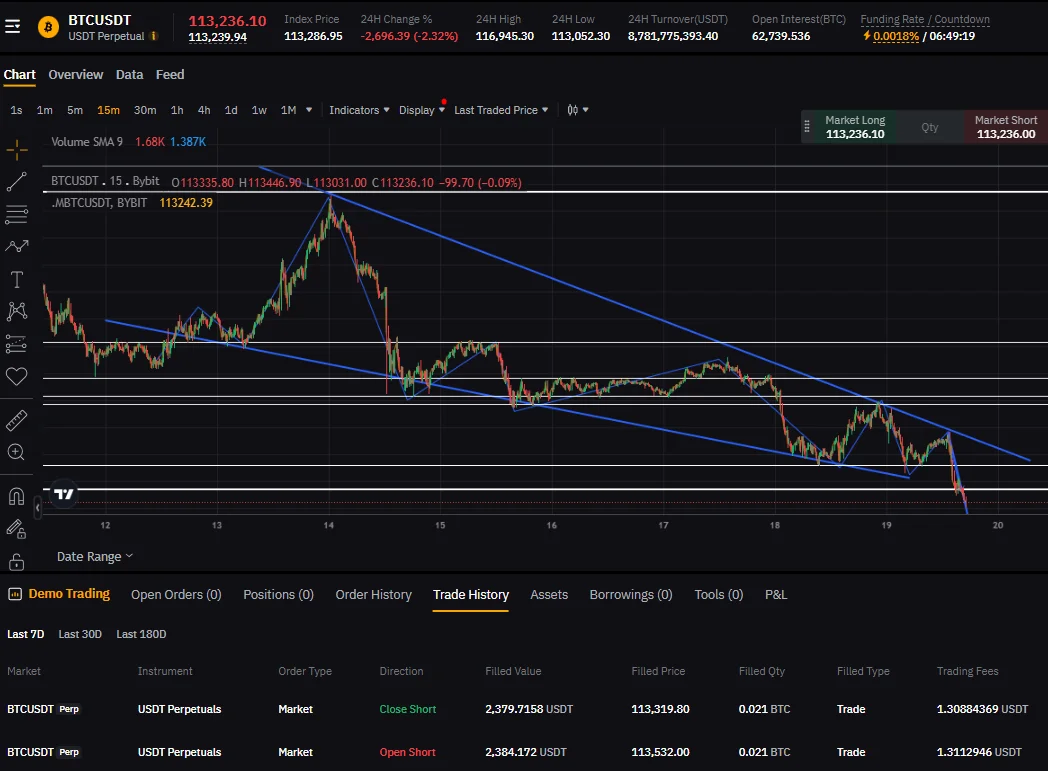 15, 5, 1분봉을 보고 15분봉에서 그린 지지선을 익절가로 지정하고 숏포지션을 취했습니다.(롱이랑 숏 밖에 선택지가 없던데 모의에서는 선물 거래만 되는걸까요?)