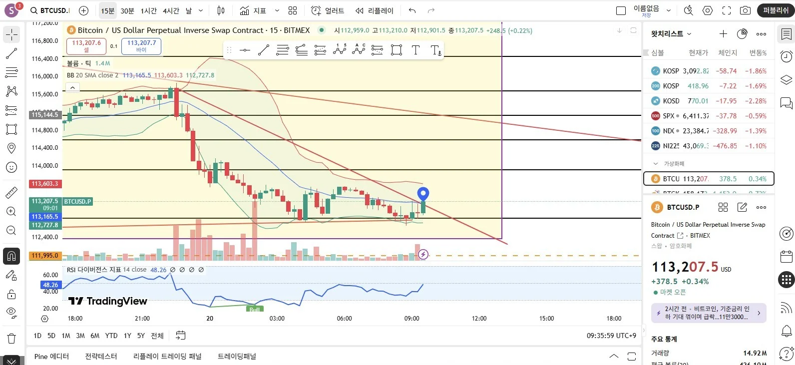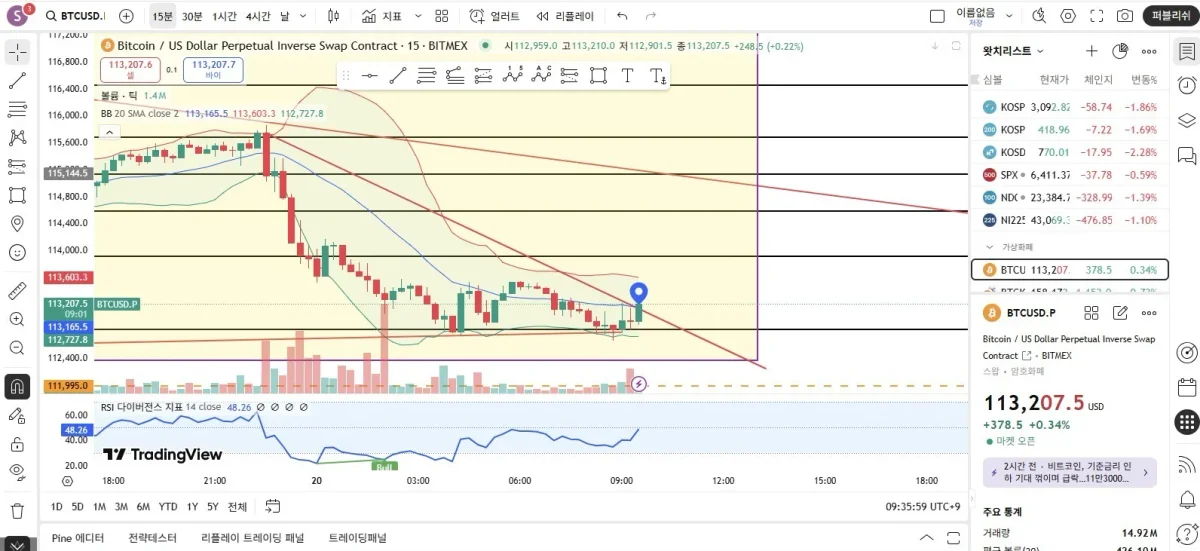 비트코인 1시간봉 폴링웻지 패턴으로 확인!