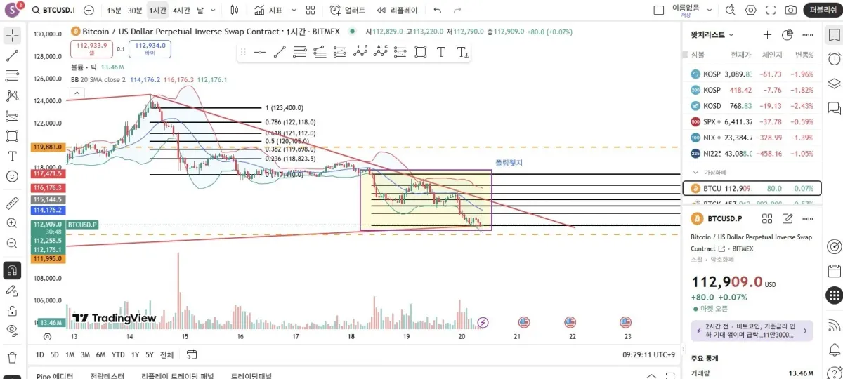 비트코인 1시간봉 폴링웻지 패턴으로 확인!