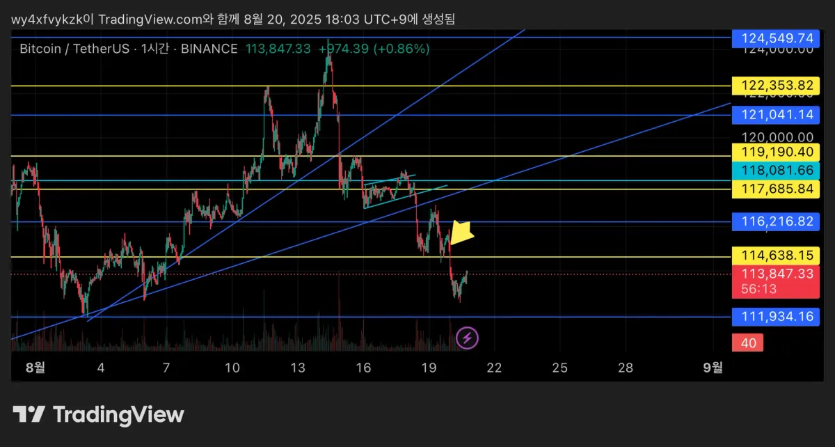 추세가 상승에서 하락으로 변환하여 화살표 위치에서 숏을 잡았습니다.