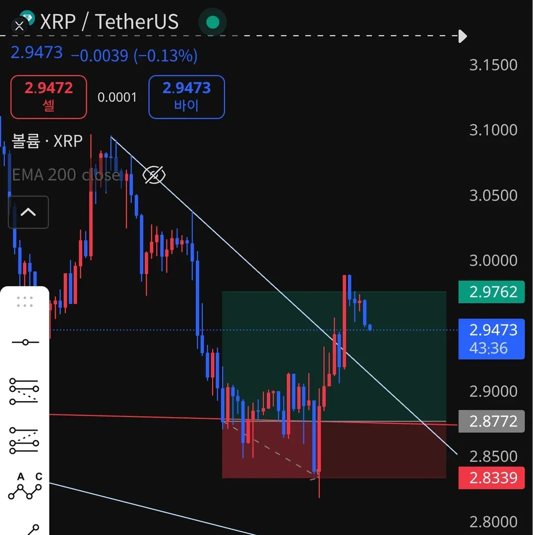 - 주요 지지선이 되었던 추세선에 닿을때 진입