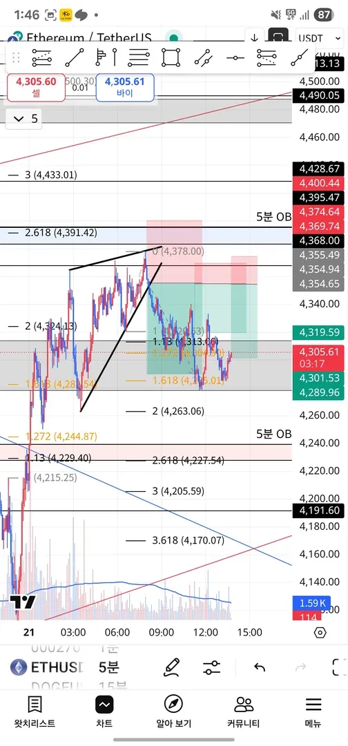 1.618부근에 익절하려 했으나 1.272에서 가격거부반응이 나왔고 분익 후 계속 지켜봤습니다.