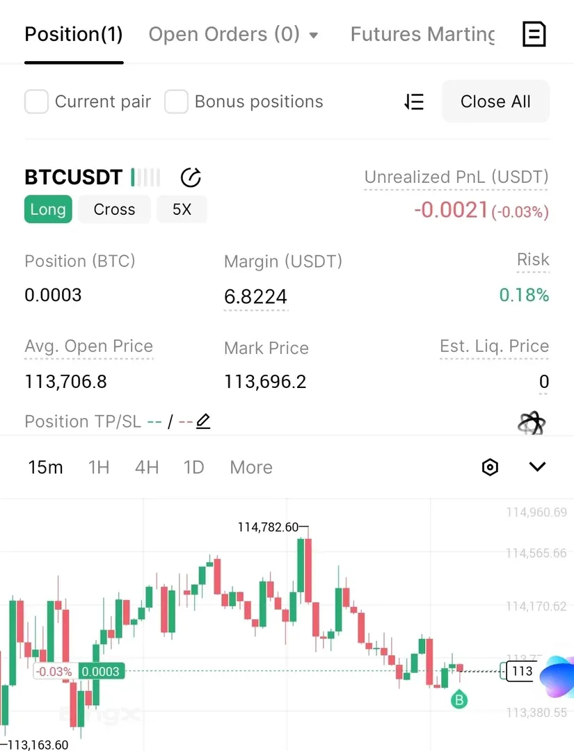 현재 113,700 부근은 이전 저항 → 지지 전환 구간 테스트 중