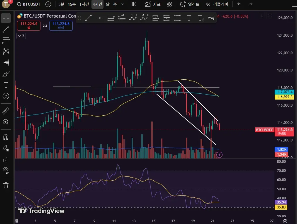 제 트레이딩뷰 차트에 RSI 지표를 추가해봤습니다.
