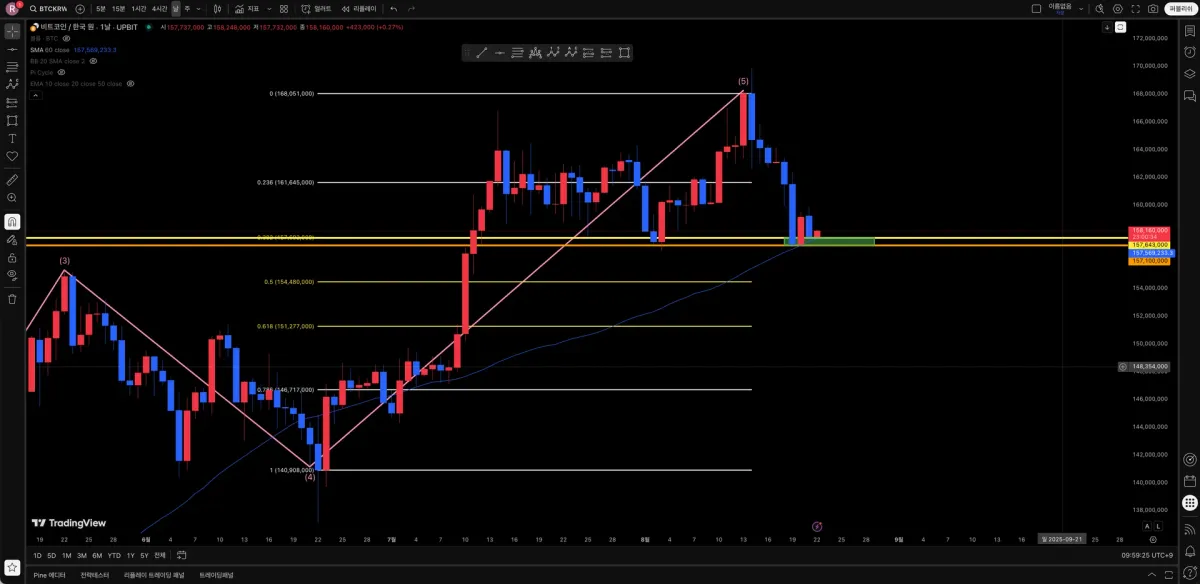 [25/08/14 9시 ~ 25/08/22 9시] 해당 구간을 플래그 패턴으로 판단하고 작도했습니다.