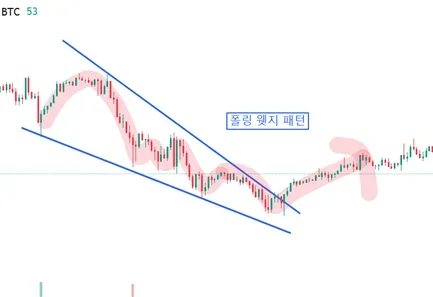 아래는 22일 오전 기준 폴링 웻지 패턴으로 보이는 그림
