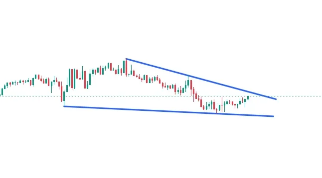 웻지 패턴 - 폴링 웻지 패턴으로 수렴하다가 상방 돌파 후 상승세를 보임.