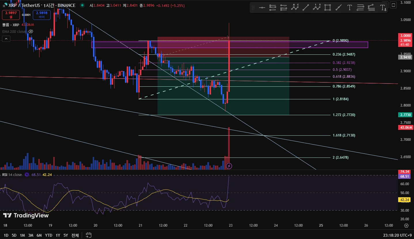 - 피보나치 0.236 하방 돌파 확인 후 진입