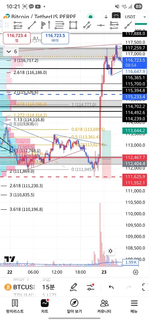 캔들과 거래량, 오더블럭만 보고 롱포지션 진입했습니다.