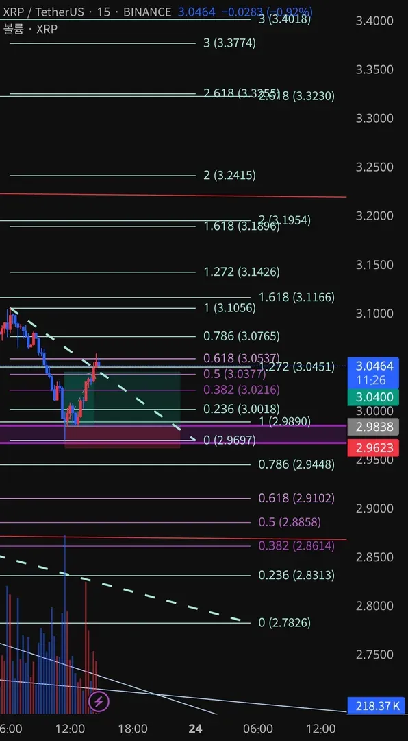 - 전 매매 목표치였던 피보나치 1.618 맞고 조정