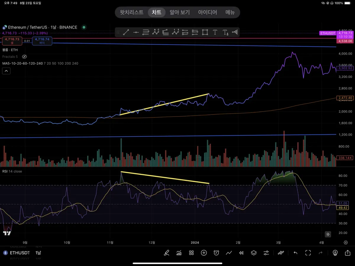 하락 다이버전스 찾아보았습니다