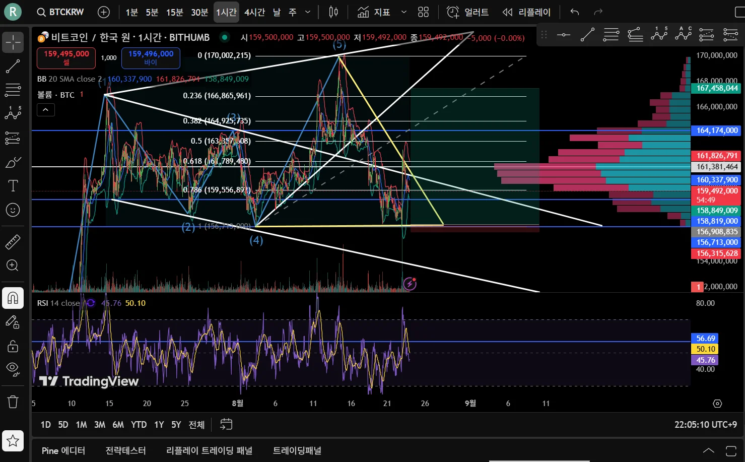 이에 따라, 하단 지지선인 156,900,000 에 진입하여 목표가 <167,458,000> / 손절가 <156,315,000> / 손익비 1:17 로 매수 대기 중입니다.