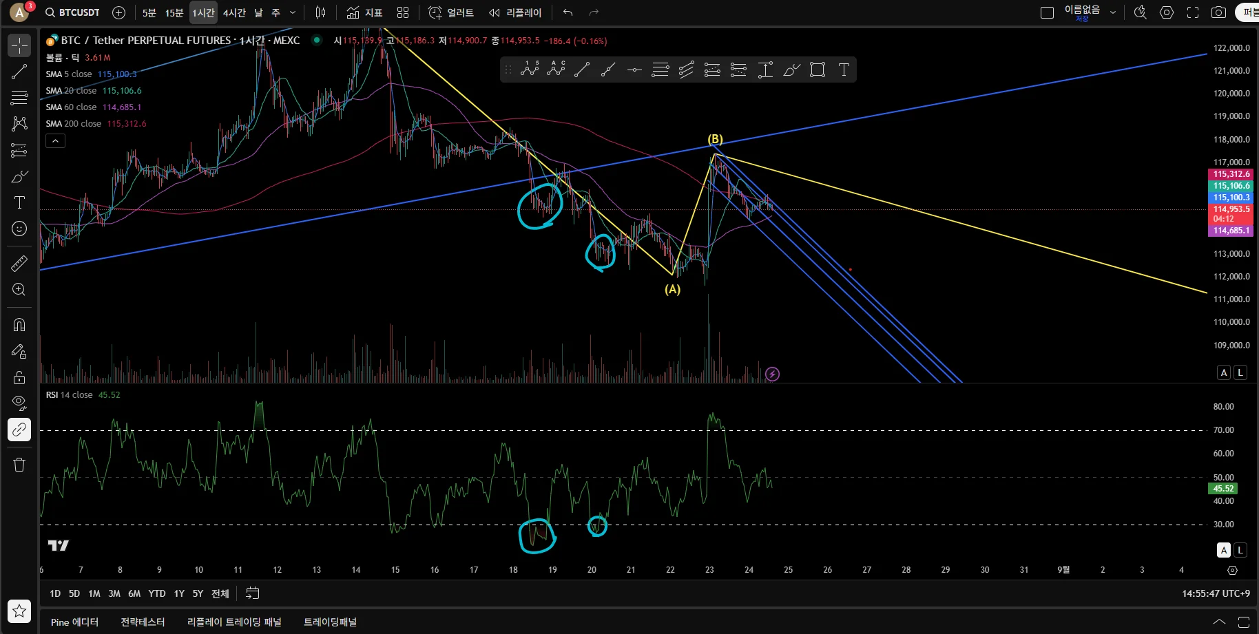 30일 챌린지 13기 2주차 RSI 다이버전스 (동그라미 표시)