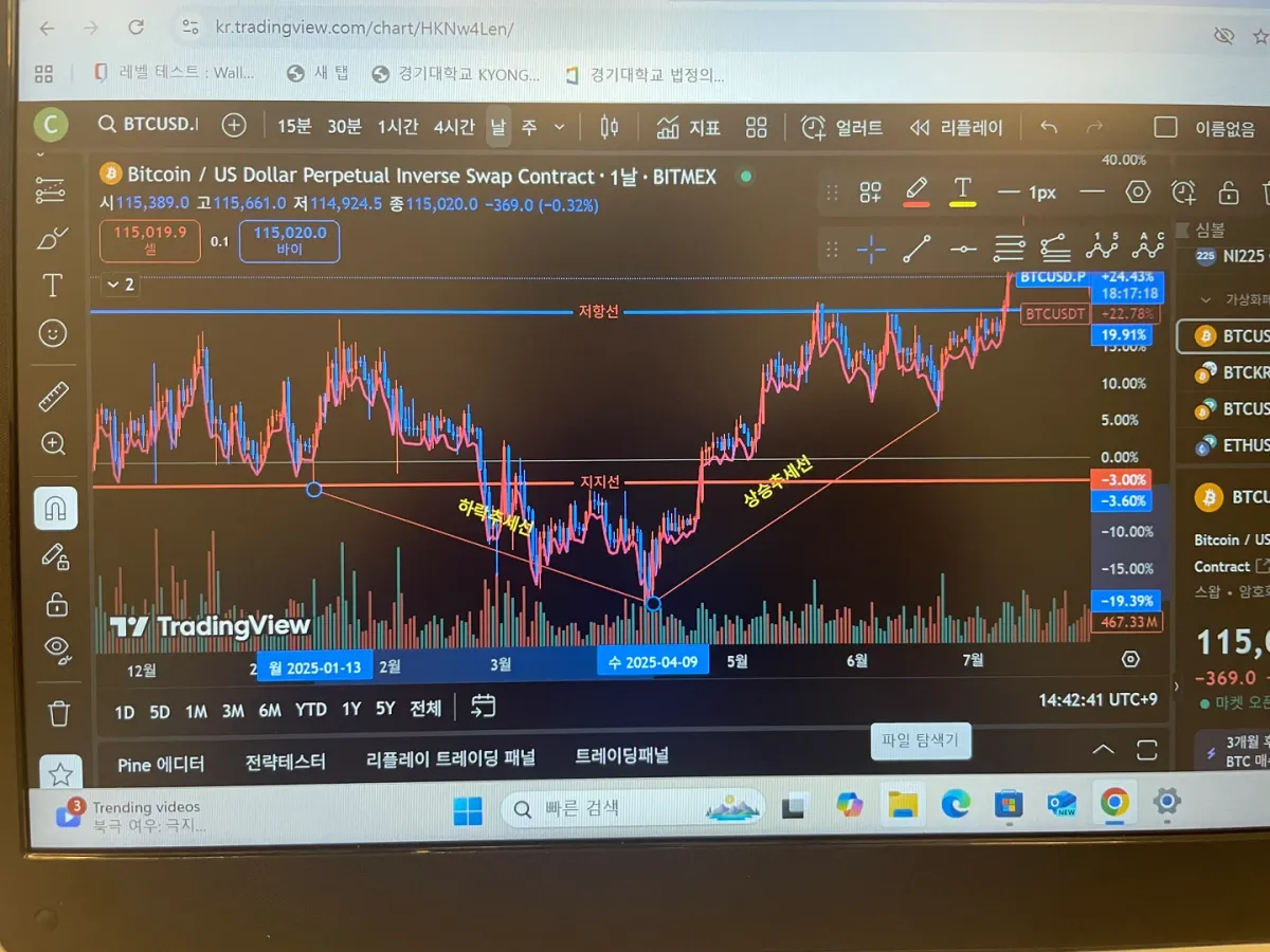 추세선,지지 저항선입니다.