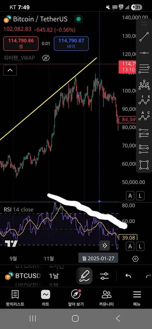 비트코인 일봉상 하락다이저번스인거같습니다
