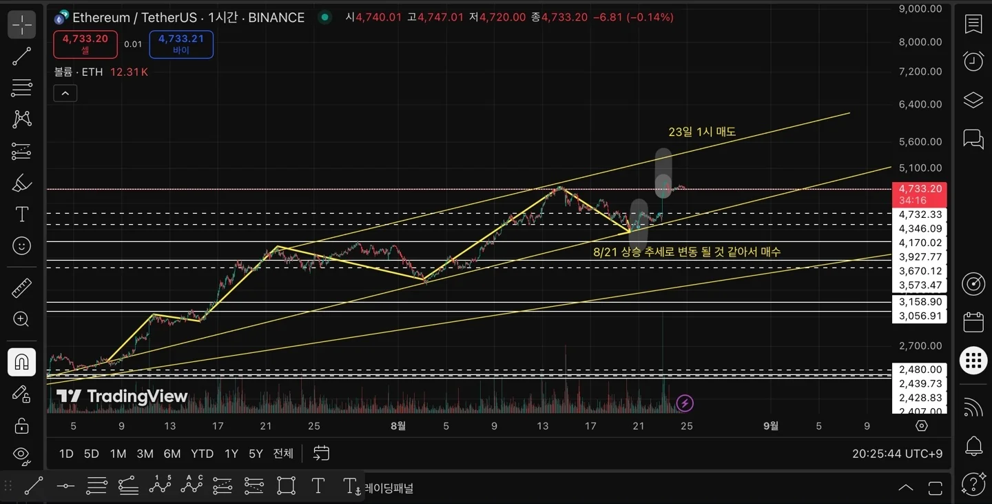 매도-23일 새벽1시 저항선이지만 초보이기에 더 이상 욕심 내지말자 욕심이 들어 매도.