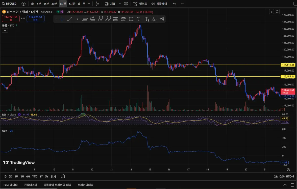 비트코인 차트에 RSI지표 추가해서 올렸습니다! 미션인증이 다소 늦었네요... 다시 열심히 참가할 수 있도록 해보겠습니다!