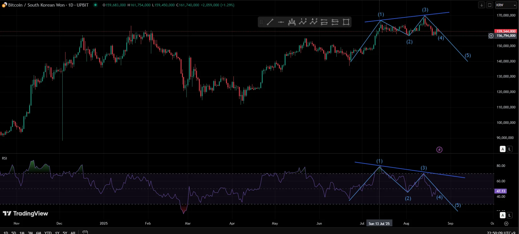 비트코인 최근 일봉은 보면 강의내용과 동일한 형태의 차트가 생성되고 있습니다.