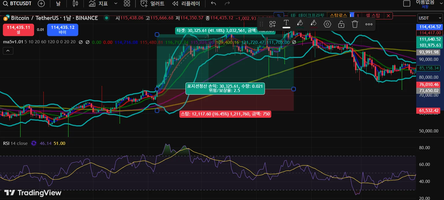 볼린져밴드 하단에서 주문 후 볼린저밴드 상당에서 팔았습니다.