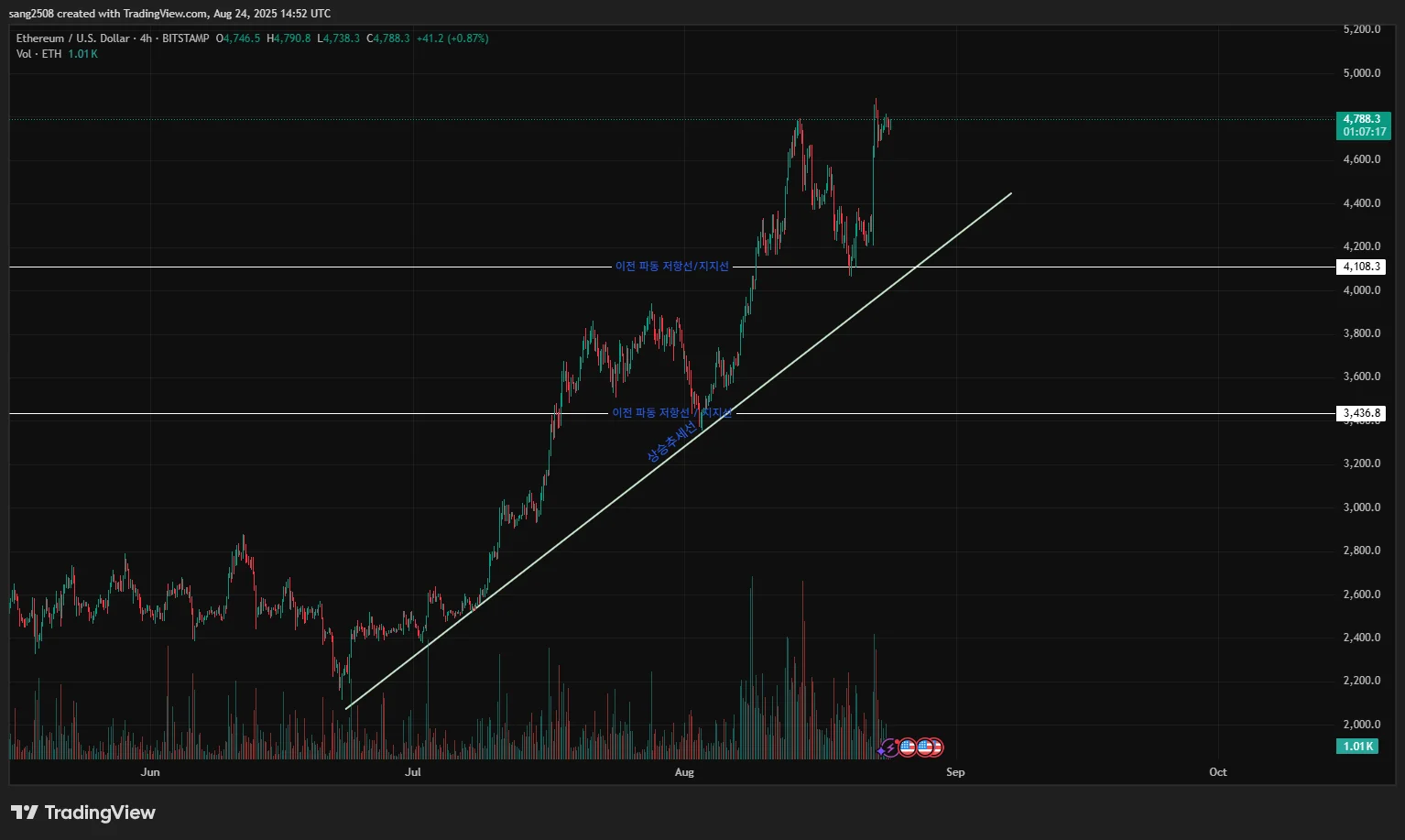 이더리움 4시간봉 차트 기준으로 배운내용 복습해봅니다.