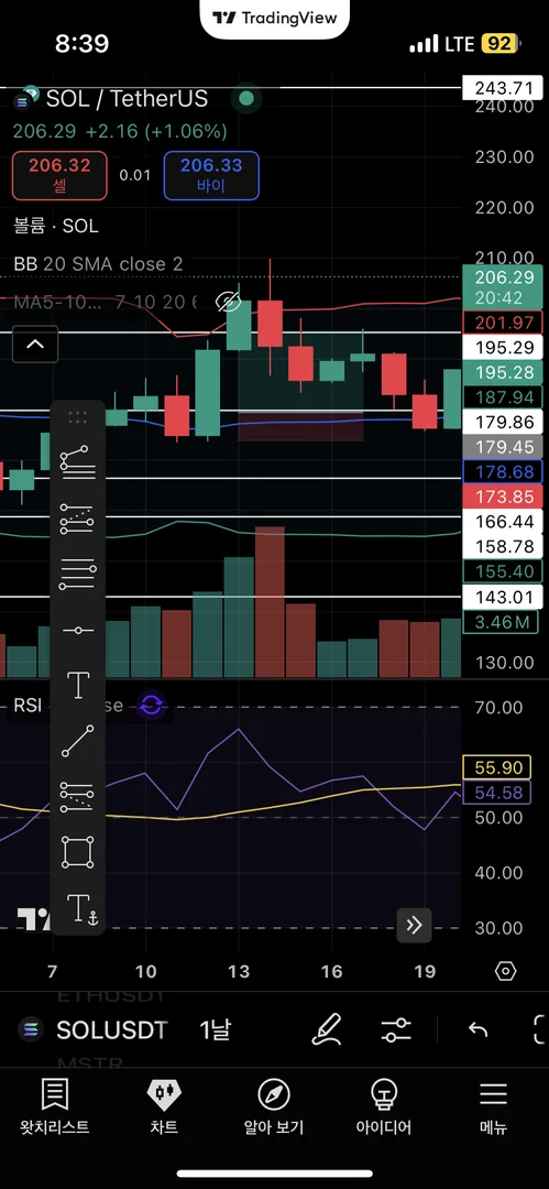 -유의미한 가로선 작도후 볼린저밴드 기준으로 롱 포지션 들어감