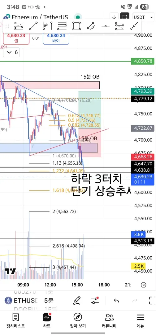 2) 주요 매물대가 채널 상단에 위치했기에 가격이 채널 하단에 있으니 매물대까지는 올라가지 않을까 생각했습니다.