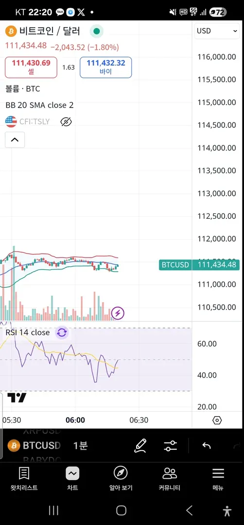 볼린저 밴드 중앙선을 터치하고 RSI 50으로 중립적인 위치이지만 상승으로 보고 있음