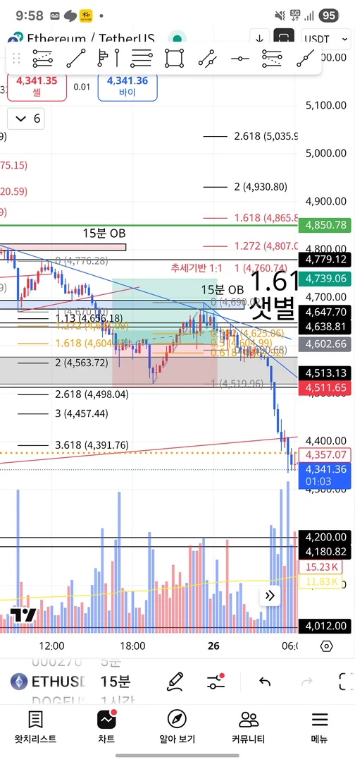 1) 1.618 확장값 닿은것 같아 지켜보던중