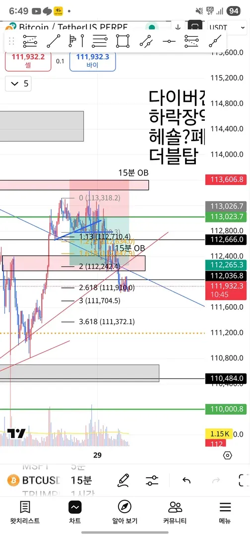4) 진행중에 헤숄패턴은 완성됐으나 넥라인 돌파 못해서 헤숄관점 폐기하고 약손절 대기중에