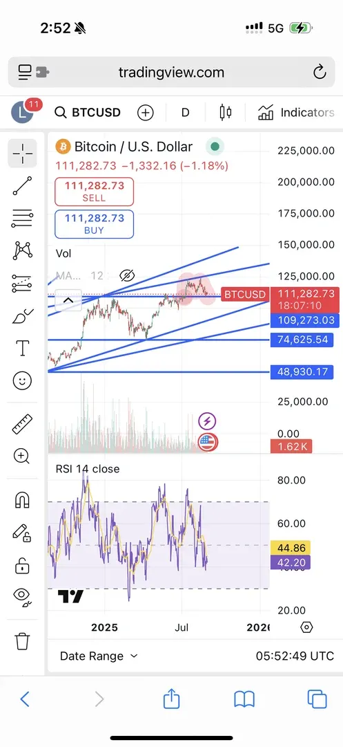 비트코인 차트에 RSI 지표를 추가하니 놀라운 결과 나왔다. 랠리와 함께 전고점을 돌파한 후, 좀더 상승하며 더블탑 패턴이 나오고, 이와 중에 거래량이 계속해서 줄어들어, 여기서 조정이나 하락이 나오겠구나했던 비트코인이였다. 그러나 RSI 지표는 비트코인이 이미 과매수 구간(RSI > 70)을 지나갔음을 가르켰다. RSI는 과매수 구간을 지나 중간에서 살짝 아래까지 하락하였다. 이는 비트코인이 결코 과매수되었지 않다는걸 가르킨다. RSI 지표가 과매도 구간(RSI < 30)까지 하락하지 않은걸 보아, 비트코인이 큰 매도세를 겪고 있지도 않다. RSI가 과매도 구간까지 추가로 하락하지 않는이상, 비트코인은 더블탑 패턴을 완성(?)시키지 않을것이다. 다시 말해, 비트코인은 여기서 횡보를 거치며, RSI를 비롯한 거래량이 다시 증가할 때까지를 기다릴 것이다.