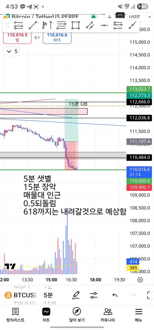 1) 하단의 매물대와 618되돌림 자리가 겹쳤고 기다리려 했으나