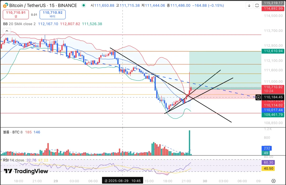 - 08.29일 6시 기준으로 추세선 작도 밑 전 고점 기준으로 작도 진행하였습니다. ( 그랬을때 크로스 되는 부분이 나왔고 해당 부분을 위로 돌파하느냐 마느냐가 제일 중요하다고 생각했습니다 )