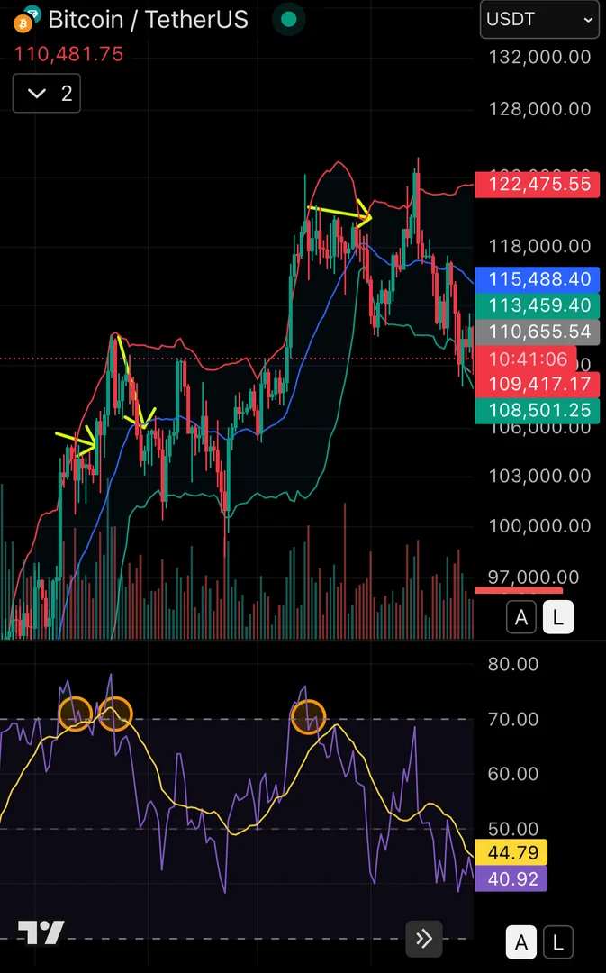 RSI 상승 후 하락하는 지점에 집중해서 찾아보았습니다. 아무래도 70이상인 구간만 찾아서 그런지 다들 하락하긴 하지만 전체적으로 상승장이었던 탓인지 조정이 크게 오지 않은 경우가 꽤 있었습니다. 재미있는 도구이긴 하지만 다른 지표와 상황도 고려하여 사용해야겠습니다.