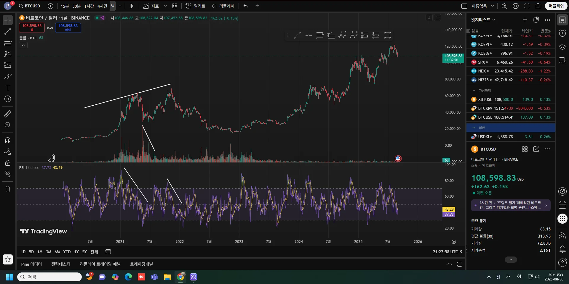 상승 추세지만 거래량과 RSI가 감소하여 하락이 예상됩니다 제가 잘 이해한게 맞을까요