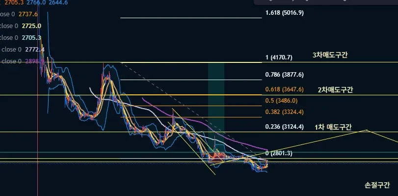 플래그 패턴 , RSI다이버 전스 상승했지만 신규 코인이다보니,,, 아무래도 세력이 있는거같다는 예상이 들었음 ,, 현재 결국 손절로인해 매도한상태이며 매매시 작도를 해보고 한가지 코인만 들어가는게아니라 여려가지 5가지 이상 코인에 손을댔고 또한 알트코인에 손을 대다보니 수익이 ,,, 안나고 50만원으로 시작했던돈이 20만원이상 잃게됨,,, 뇌동매매의 결과도 있긴하지만, 앞으로는 2개 코인 이상은 매수하지 안겠다고 생각했습니다.