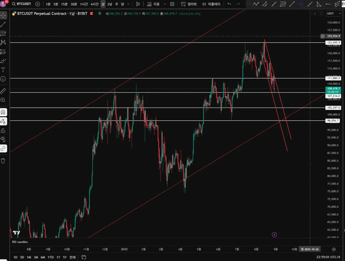 현재 큰추세 상으로 추세를 보았을때 98,056을 이탈하지 않으면 상승추세는 유효하다고 추측됩니다.