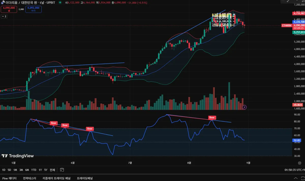 하락 다이버전스가 연속적으로 이어지는 모양을 포착했습니다.