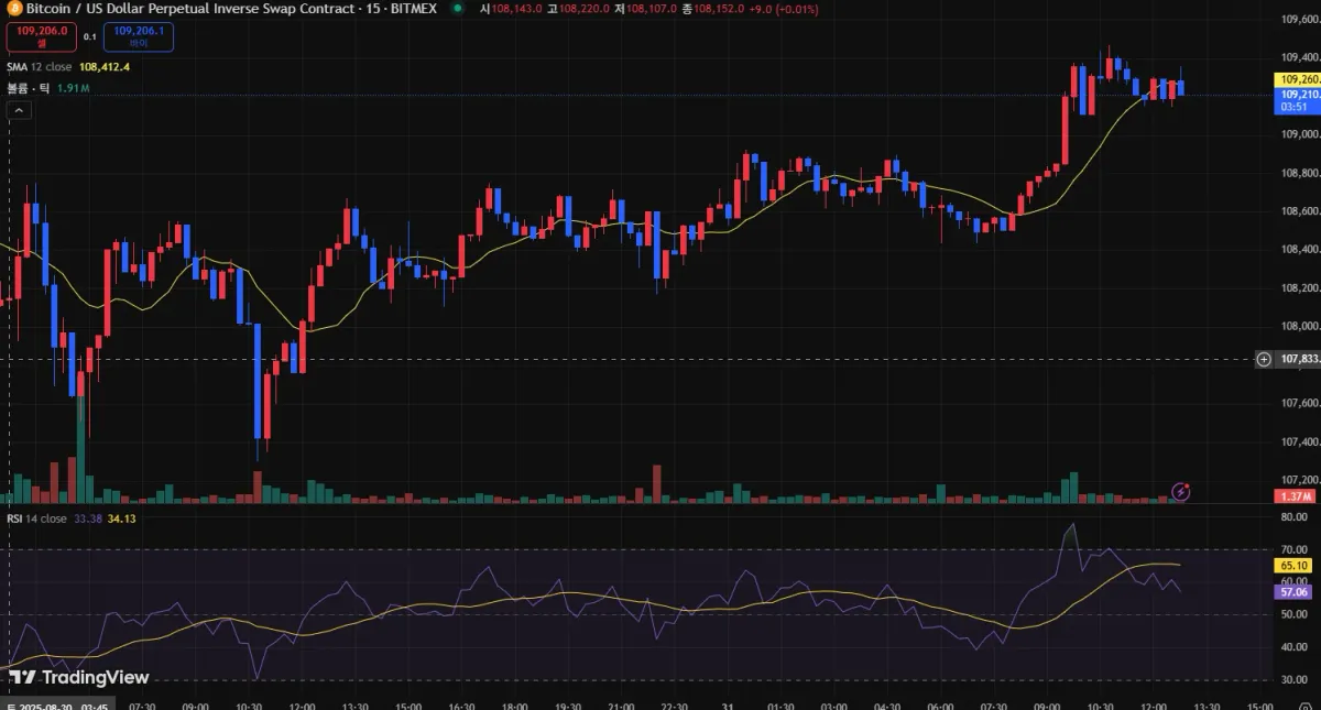 짧게 109,200근처에 진입하여 109,600 익절 목표로 진입