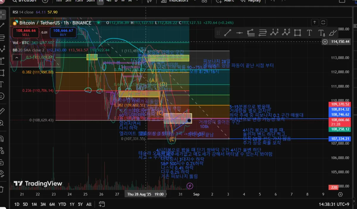 (pce 연설 끝 난 후) 가격 움직임이 없던 구간 108k 에서 거래량도 적었음 그 구간만 오면 가격이 저항됐지만