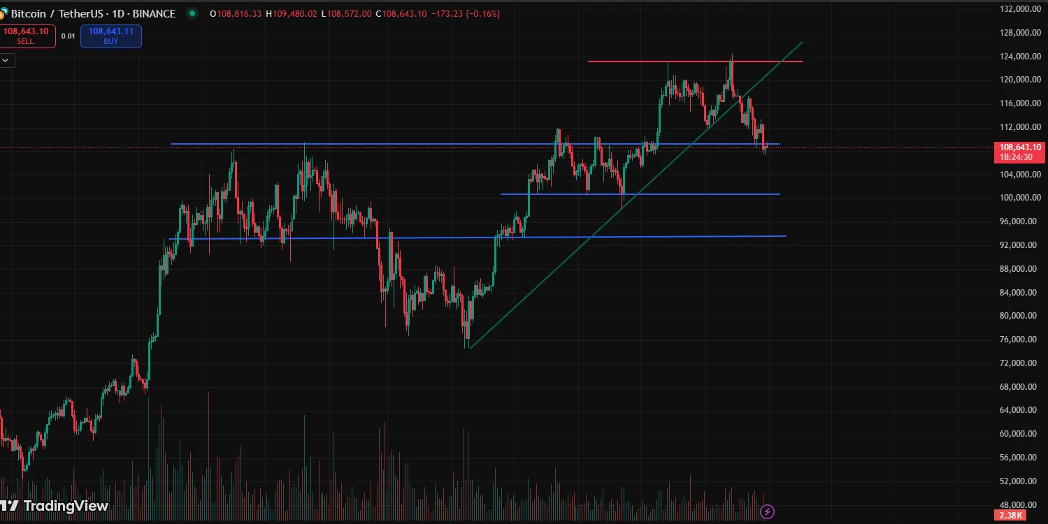 1차 저항선은 두번의 박스권 상단인 108~110k