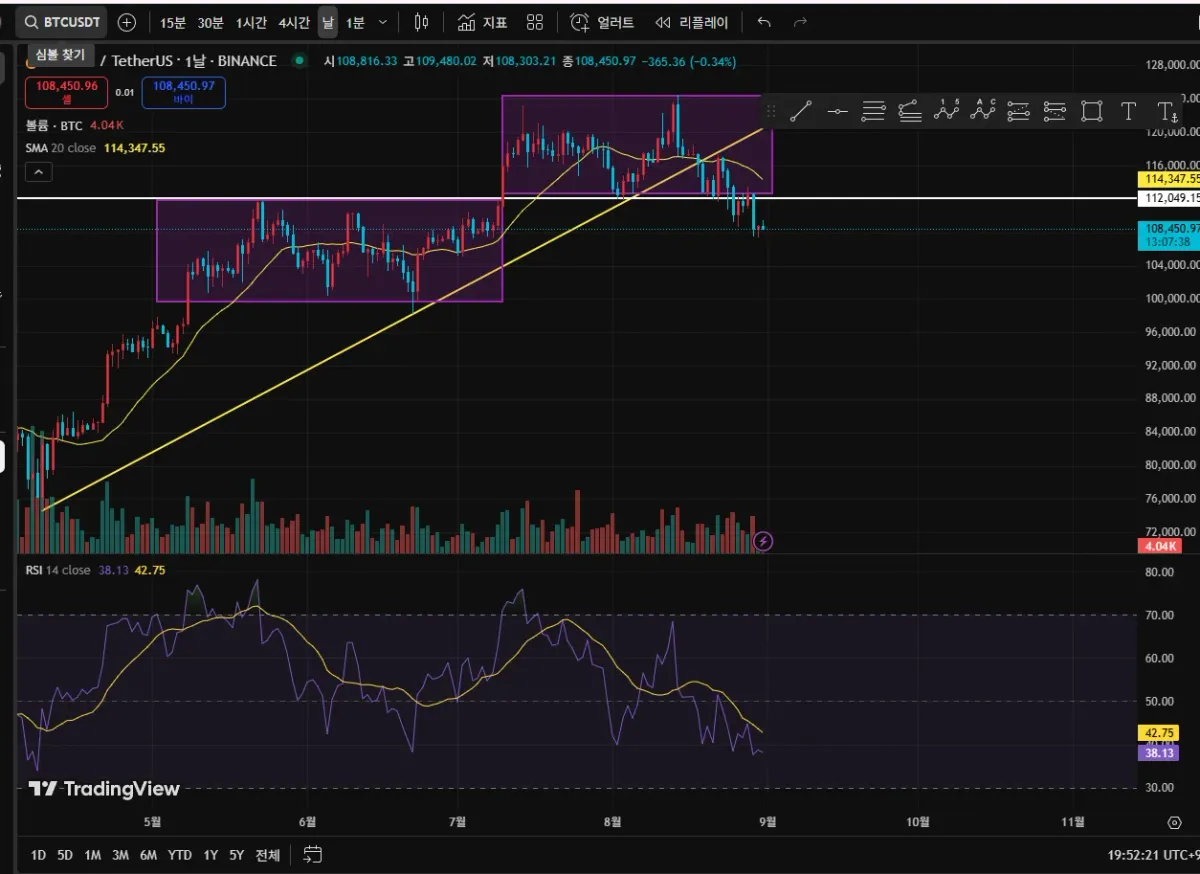 • 8월 말에 지지선을 뚫고 내려가면서 하락추세로 전환 예상