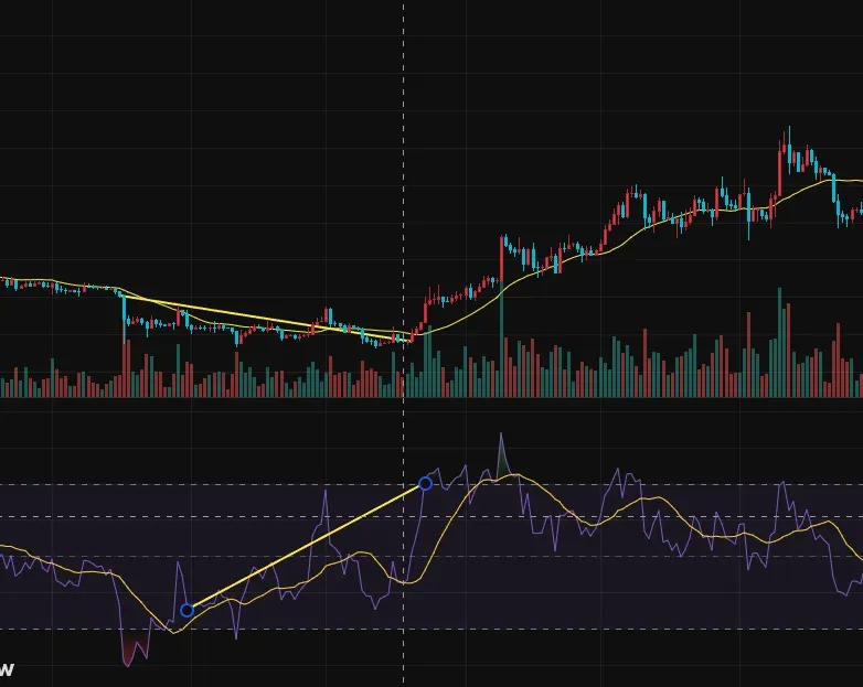 가격은 떨어지지만 RSI는 높아지는 현상 발견 (= 상승 다이버전스)