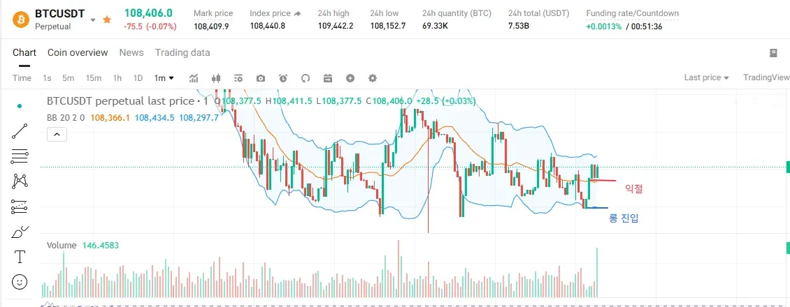 rsi 35, 볼리저벤드 하단 진입, 이동평균선에서 익절
