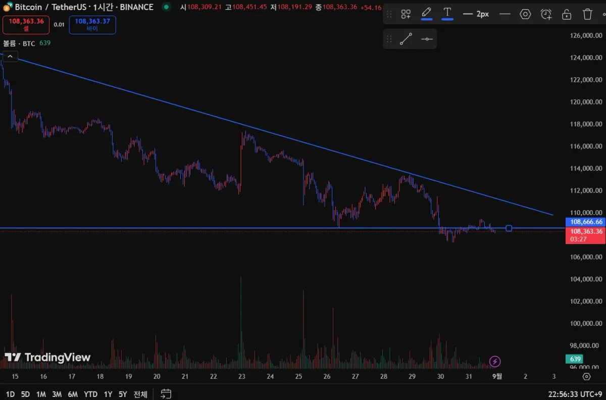 BTCUSDT 추세선과 지지선 작도해보았습니다.