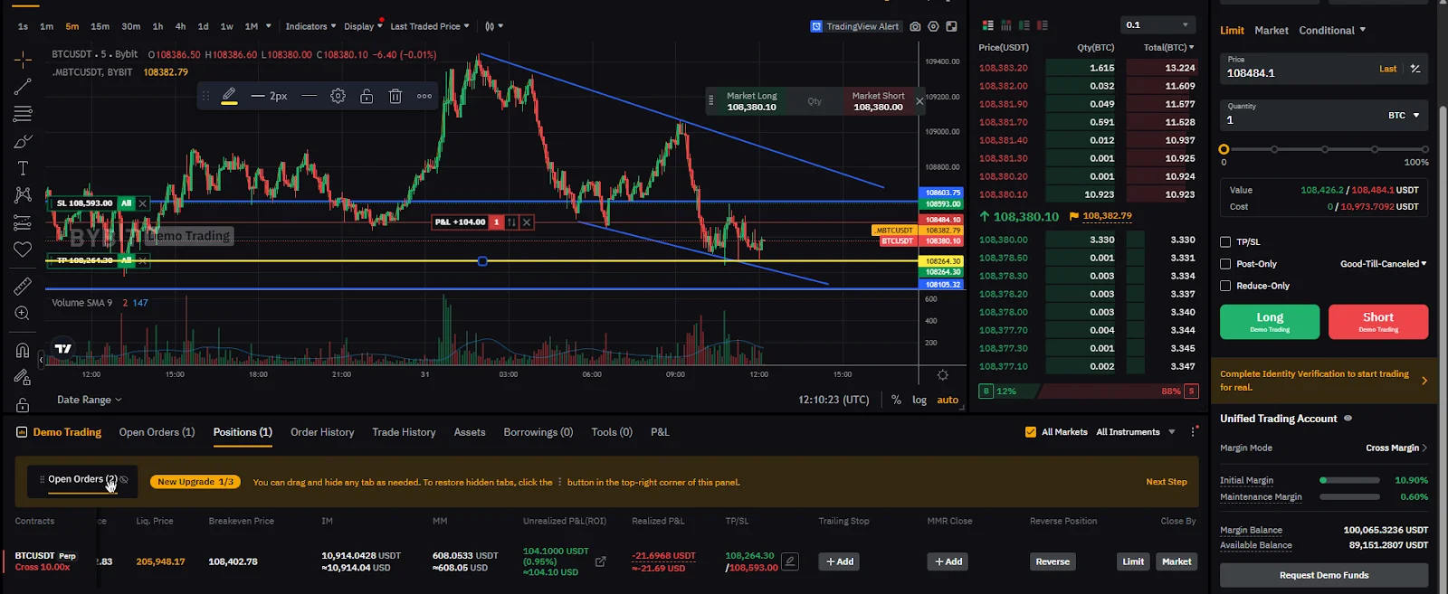 더 위에서 익절하기로 판단하고 자고 오니 수익이 나있었음. 또, 그렸던 추세선에서 지지를 받고 가격이 상승함.