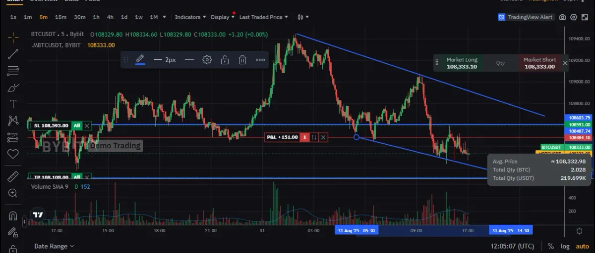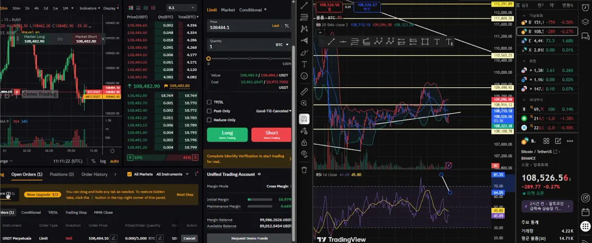 1주부터 15분까지 지지, 저항, 추세 등을 확인하고 숏으로 진입