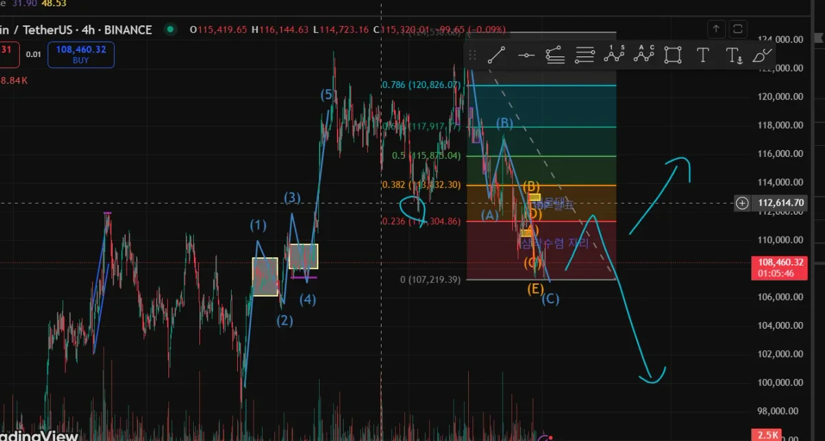 제일 최근 저점이 좌측 엘리엇 파동 4번째에 있는걸 알 수 있다.
