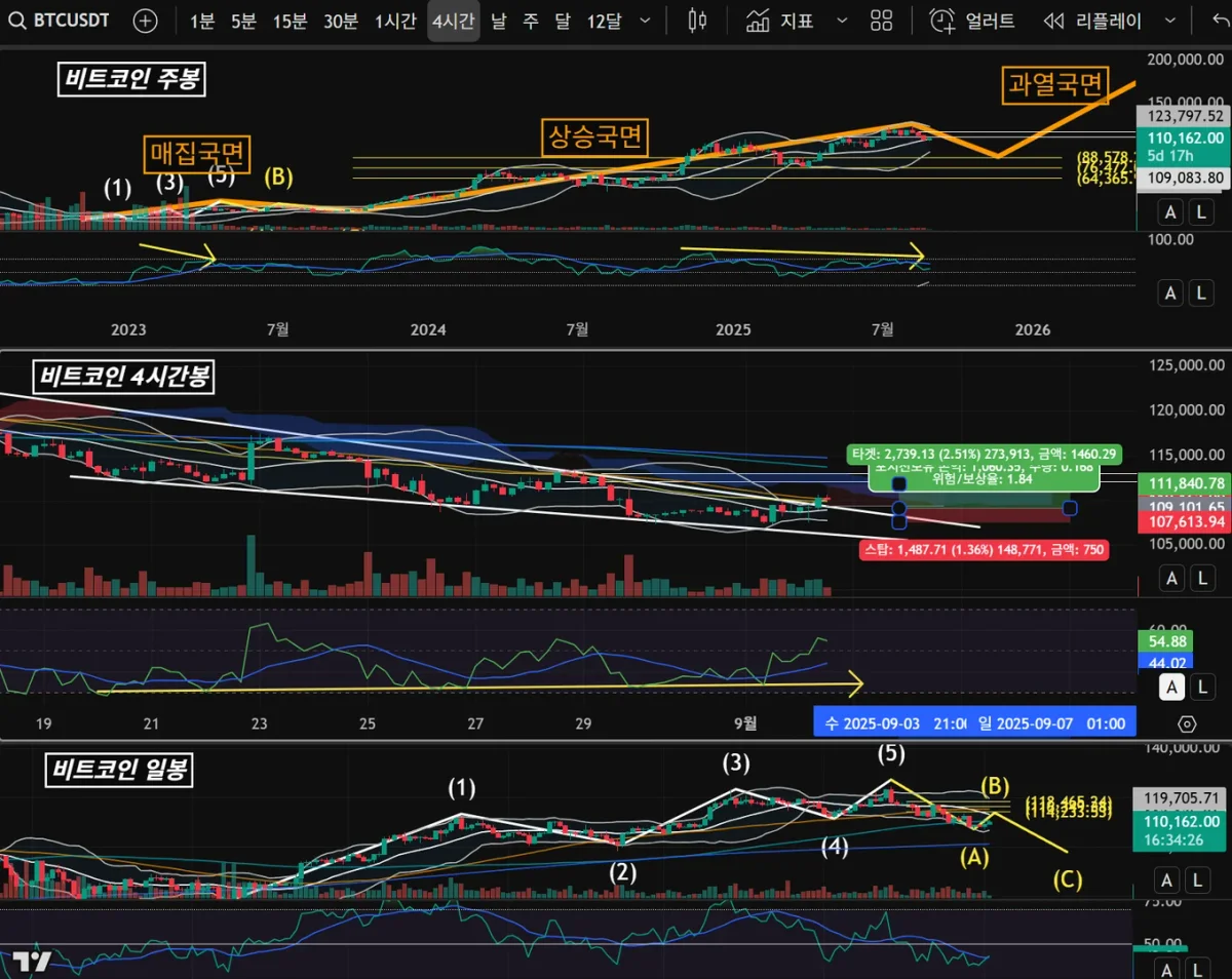 - 4시간봉상 상승 쐐기형, RSI 상승다이버전스 3번째